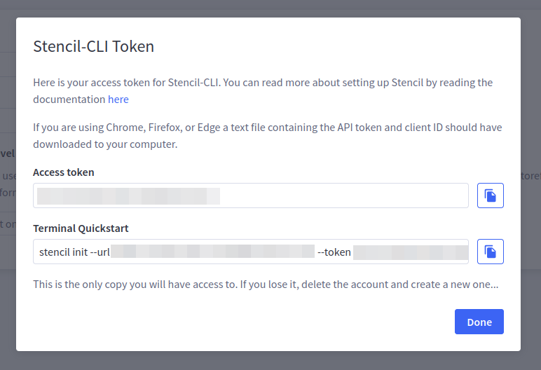 If you already have some Automated CI/CD setup for your stencil theme, we can probably get by with just “Local Development Only”, but if we eventually need to be able to “Publish Themes” you will have to come back and generate a new token all over again (you can’t edit them once they’ve been created).